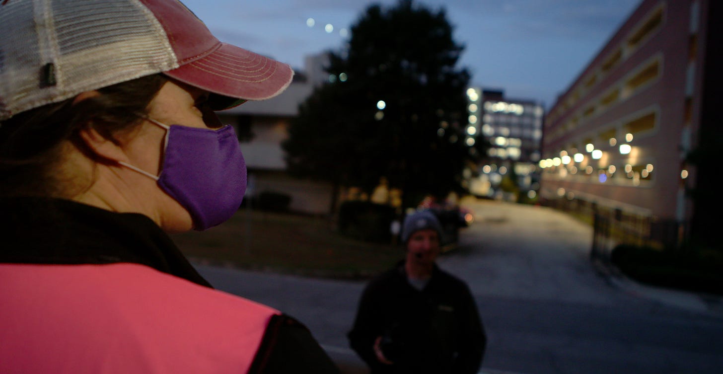 Hampton, who was working in Atlanta, soon identified Tracii and her colleagues as ideal subjects. “Once I saw the dynamics with the protesters and how Tracii managed her team, I felt like there was a story we could tell,” said Hampton, who spent time at the clinic getting to know the women and their routine before filming began. She was impressed by “how caring and sensitive everyone was.”