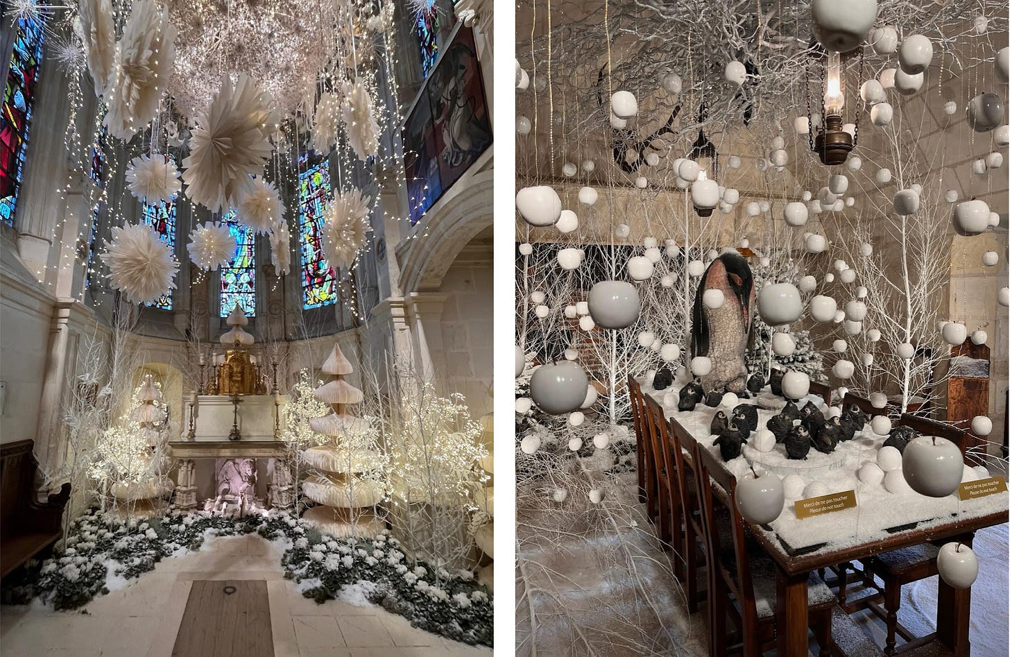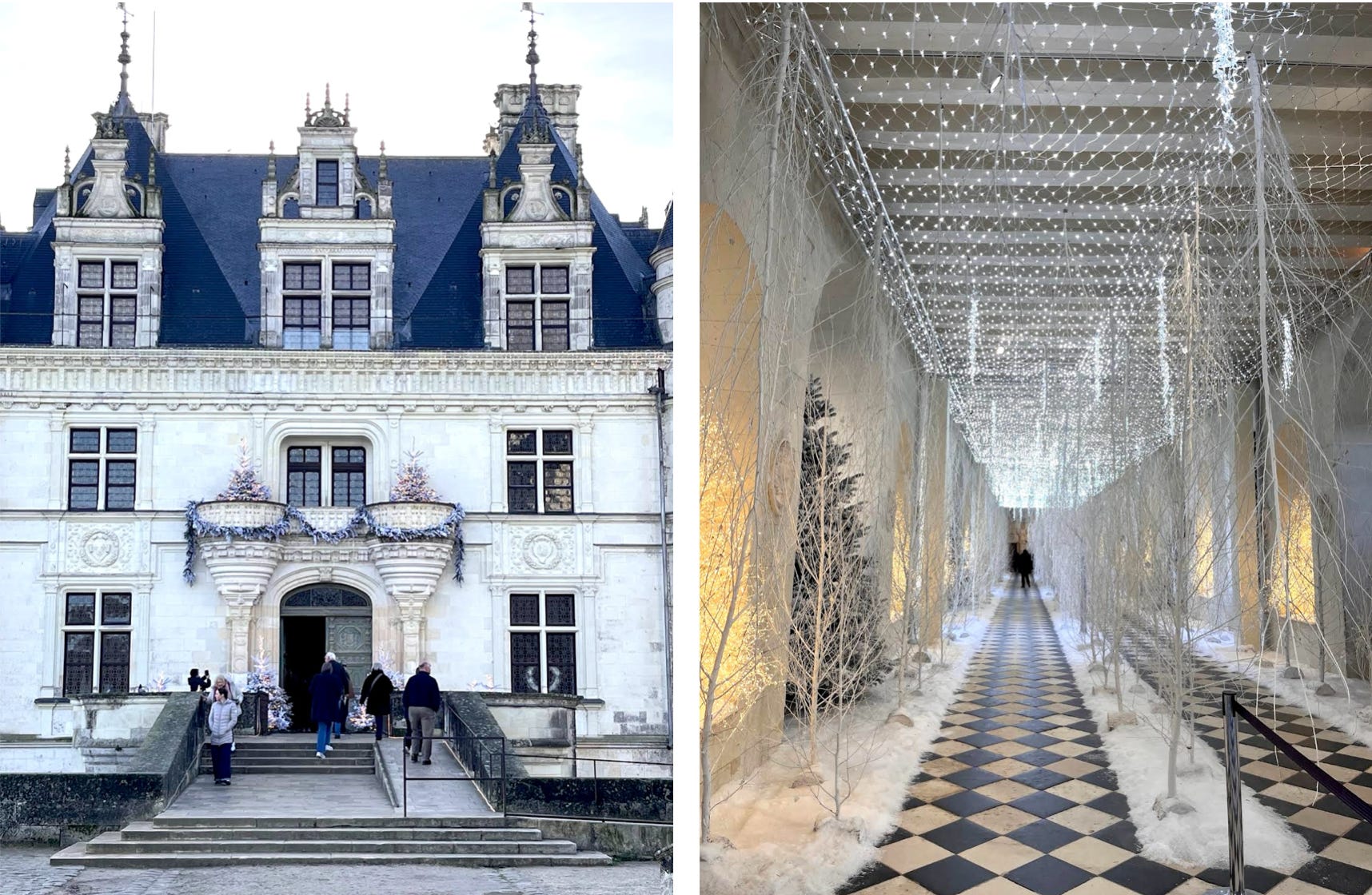 I was going to write about the extraordinary women of Chenonceau, each of whom left an indelible mark on this elegant pile of stones—women who shaped politics, guided the arts, and influenced the philosophical and artistic ideals of a nation through 16th-century religious wars, the French Renaissance, the Age of Enlightenment, and on through the 20th century—and how they inspire me, as a woman, with a quiet power and an overpowering sense of strength. But instead I chose to write about my single day in a place of beauty and grace, a morning spent breathing in centuries of life and art among the exquisite Christmas displays in soft snowy white with a group of friends.