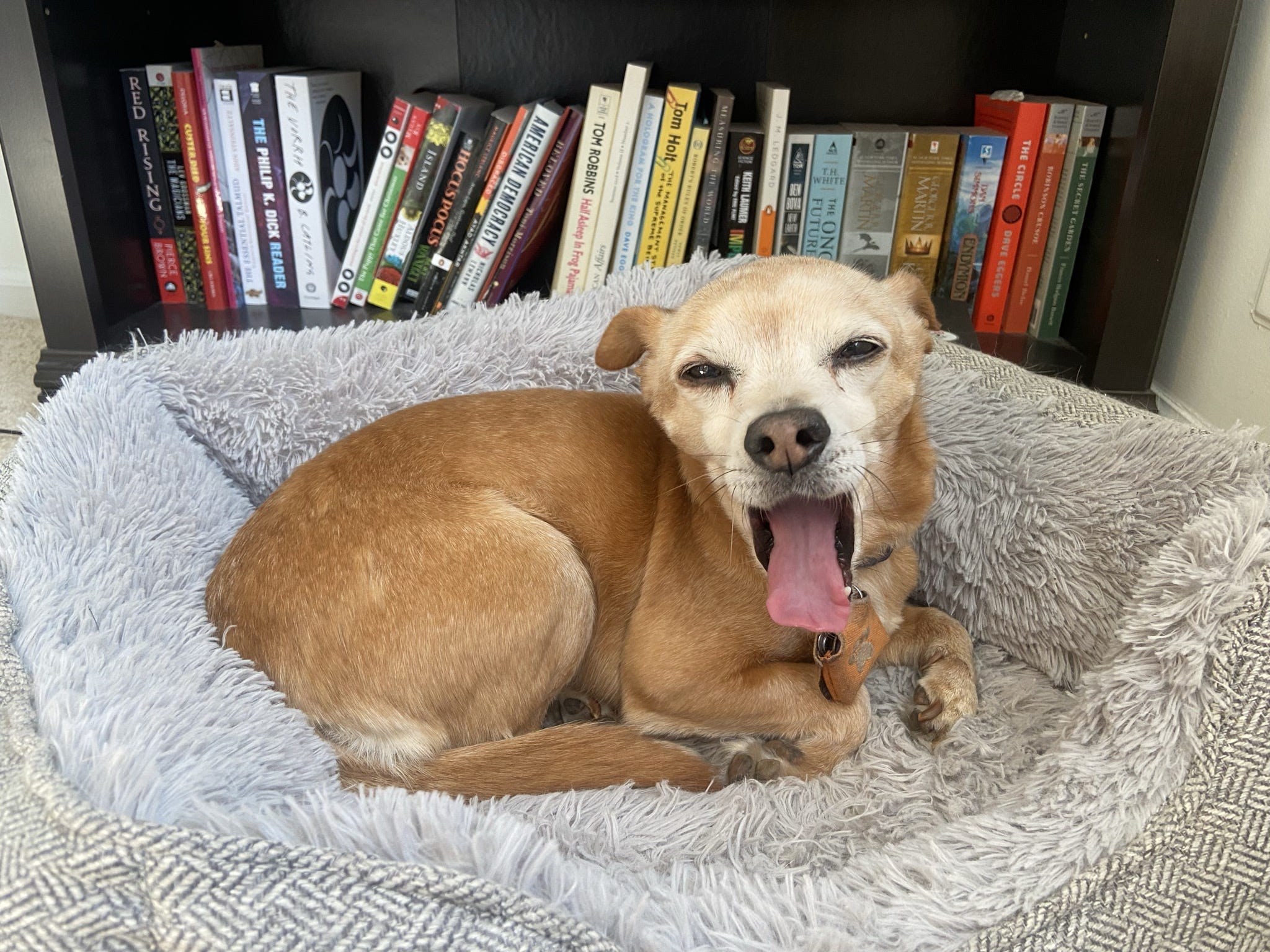 Hobbies: Sleeping, Sprinting around the yard, Barking at perceived threats (humans, all other dogs, shadows, any noises over a hushed whisper, etc.).