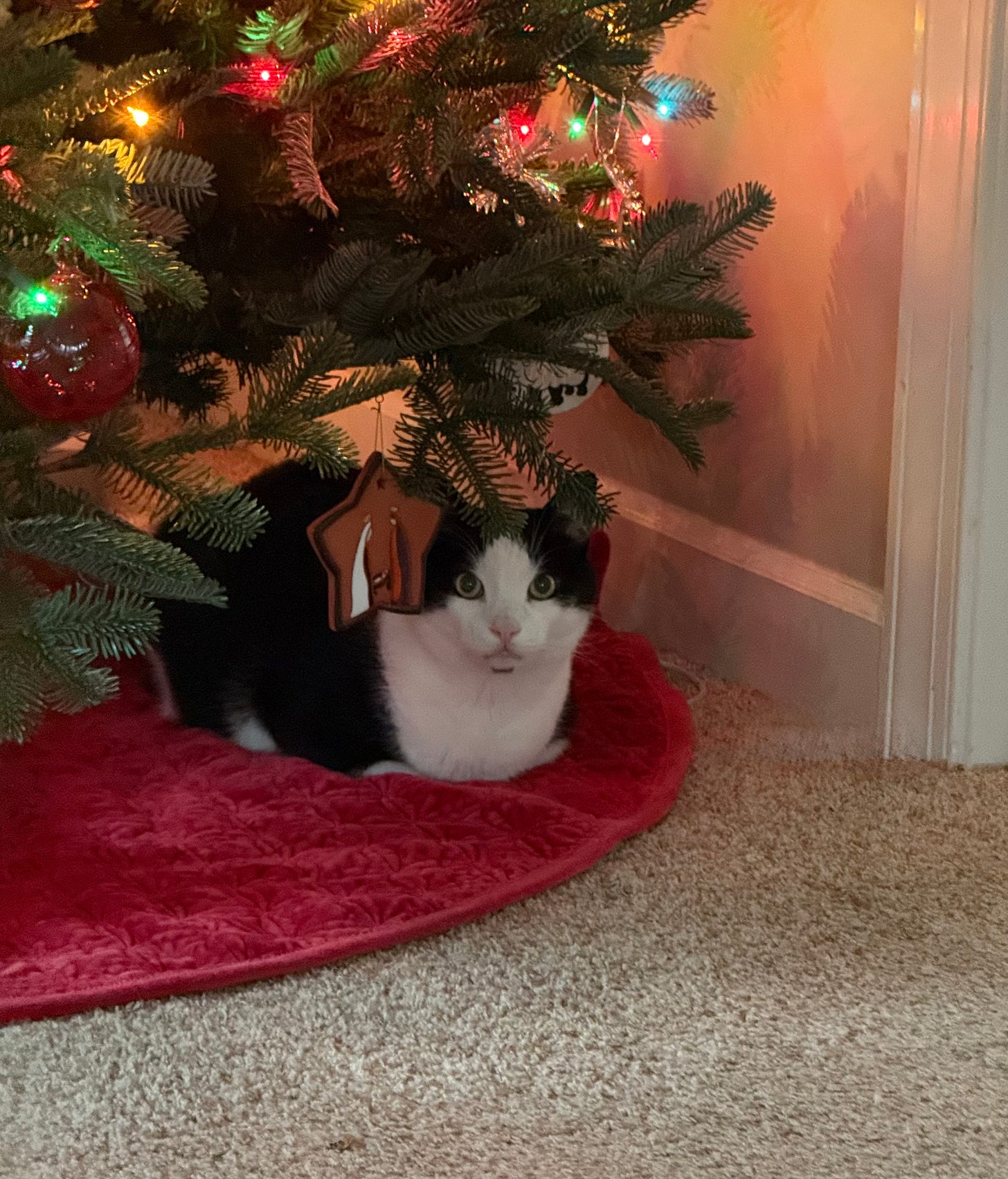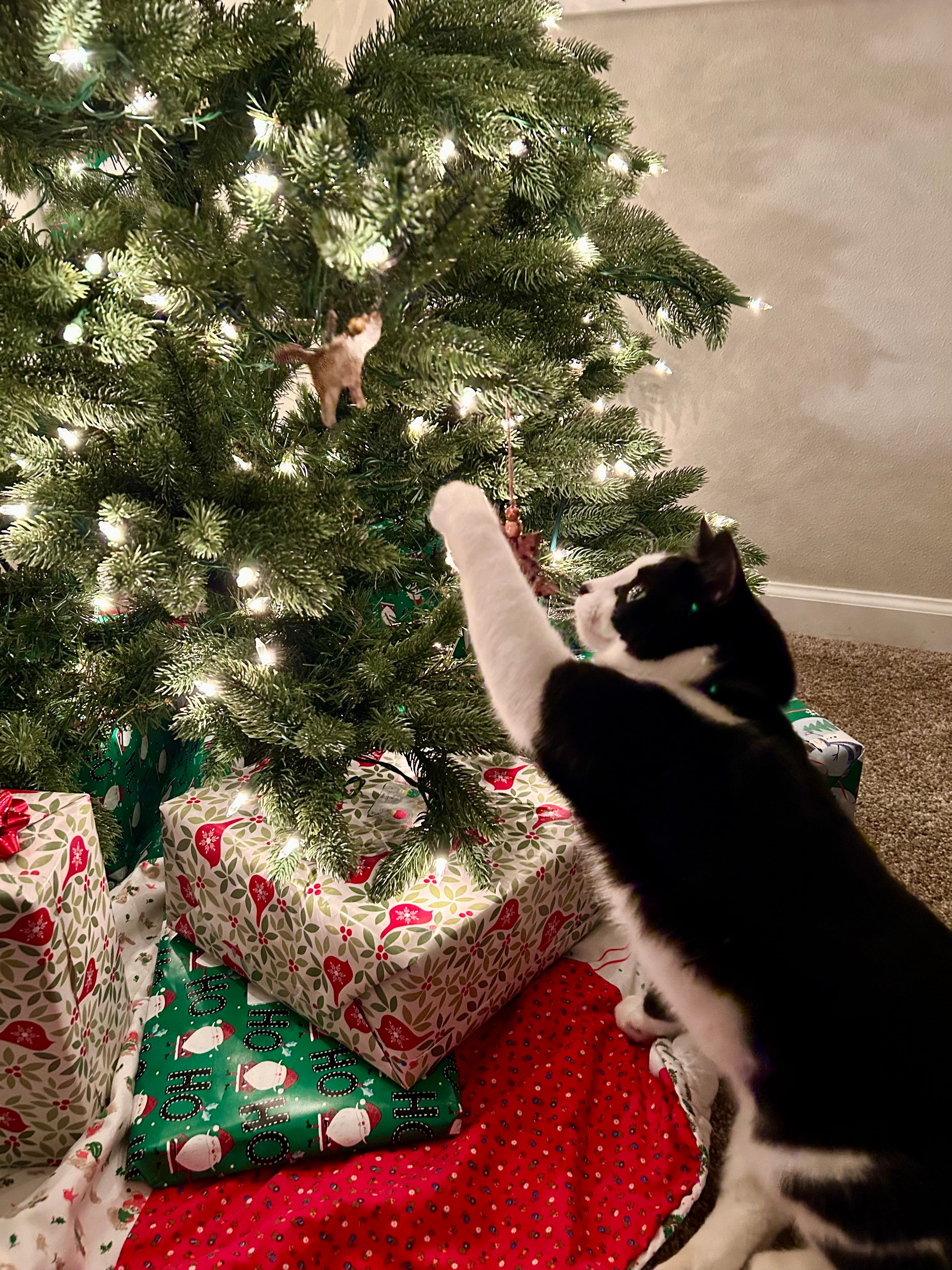 Radar. He’s an indoor kitty but he feels like an outdoor kitty when the Christmas tree is up! (Sabrina DiMichele)