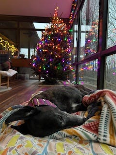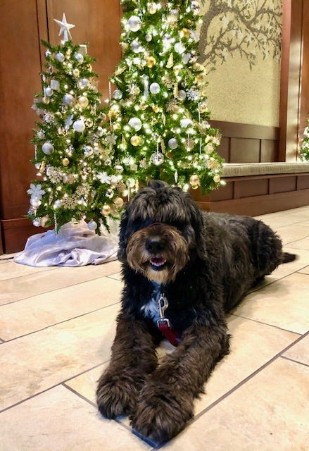 Louie under the tree. His favorite time of year.. (Lesley Fortier)