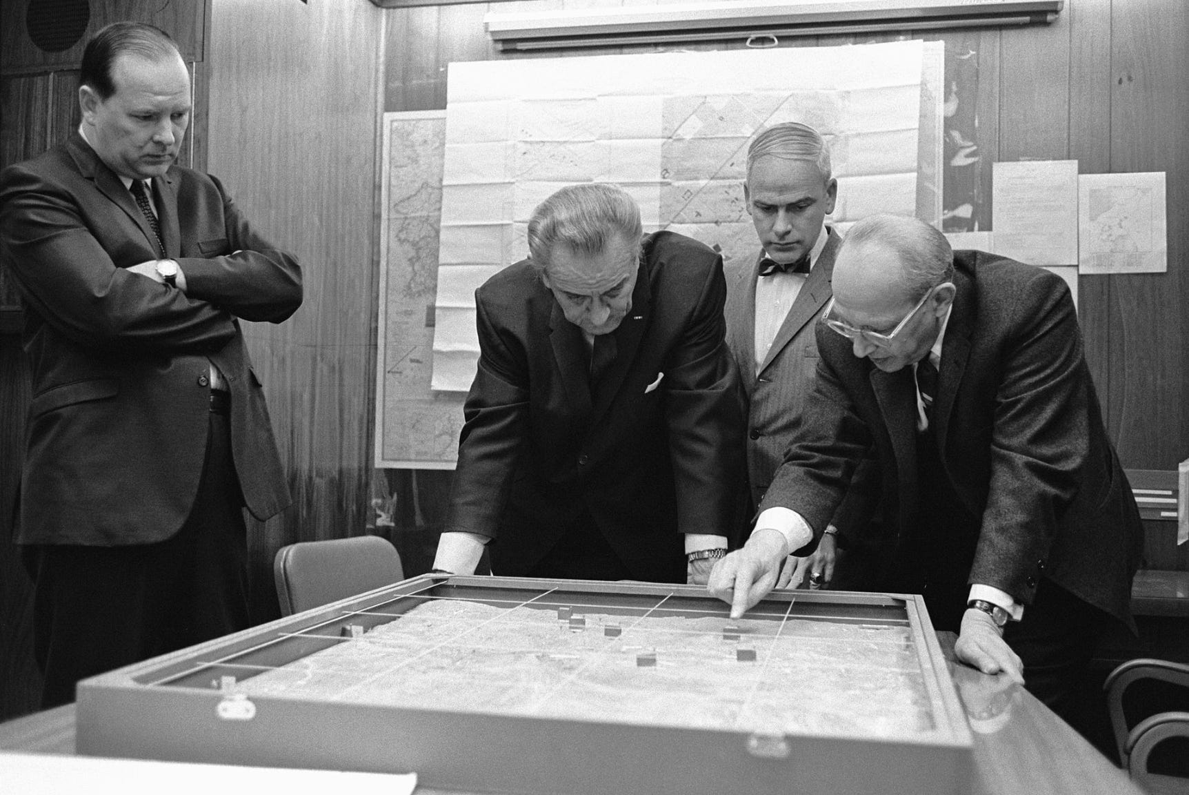 Lyndon Johnson, staying up all night waiting for an official report on a bombing mission he’d ordered in South Vietnam.