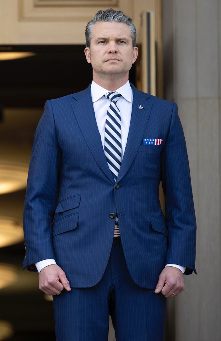 Using think and Hegseth in the same sentence is an oxymoron. The man is indeed a tattooed, hyped up ball of testosterone who thinks that being a "lethal warrior" somehow makes him more manly. Hence the giant black tattoo on his chest and "god wills it." What have we come ti?
