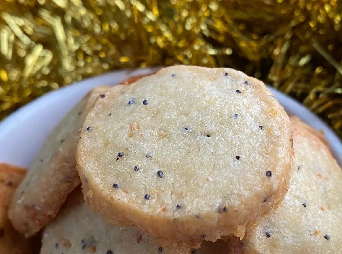 And timely again is Marissa’s New Year’s resolution chocolate chip cookie: “I made these cookies on New Year’s Day 2024. Some folks write lists of resolutions; I represent my goals in cookie form. This cookie is unabashed: She is tender and yields when appropriate but fearless and forward in letting you know who she is. This is a cookie all about positive change–and very full of chocolate.”