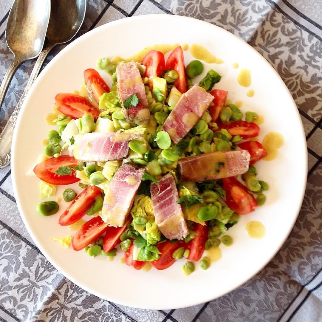 Notes: Fresh tuna can be replaced with high-quality, oil-packed canned tuna; you could also replace the anchovies and the tuna for grilled sardines or red mullet, both Mediterranean fish.