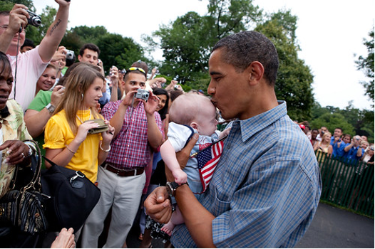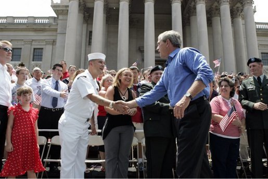 Bush's post-9/11 Fourth of July celebrations shifted toward military symbolism while maintaining intimate human scale. Wounded veterans and military families were prominently featured as honored guests. Obama's consistently emphasized families, children, and service members. Wide shots showed diverse crowds mixing freely, with wheelchair-accessible viewing areas prominently featured and children playing on the South Lawn. The visual message: America's birthday belongs to all Americans.