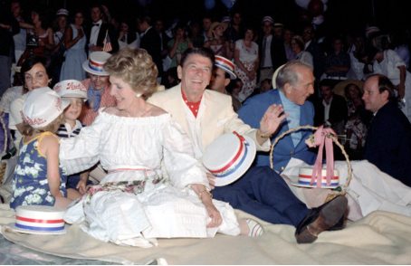 In this image, the Reagans joined the South Lawn picnic in 1981. Look at how they are dressed casually and photographed at eye level, among the people.