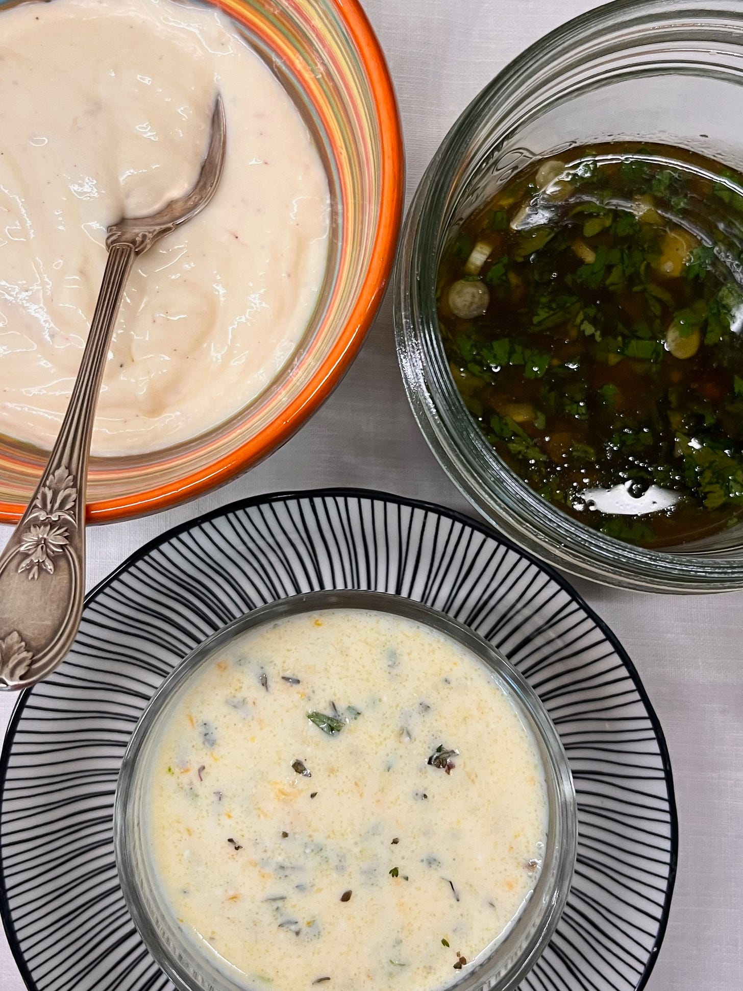 I love the Voltaire quote I opened with. Today I am the song in the lifeboat, offering my first recipes of summer. Three simple salad dressings with three different personalities to whisk together, stick in the fridge, and pull out when a fast, fresh, cool meal is needed. Whether topping steamed or roasted vegetables, seared beef or chopped chicken, mixed greens, or a panoply of fruits and vegetables, you’ll find these dressings endlessly adaptable every day.