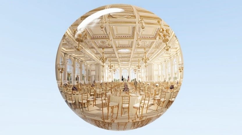 The thing about big, hollow things is that the bigger and hollower they get, the more unsound they become. The ballroom may stand (though who knows, the administration seems to be dodging all oversight) but make no mistake: the wealth and power that produced it is grossly, unstably inflated. And we know what happens to bubbles.