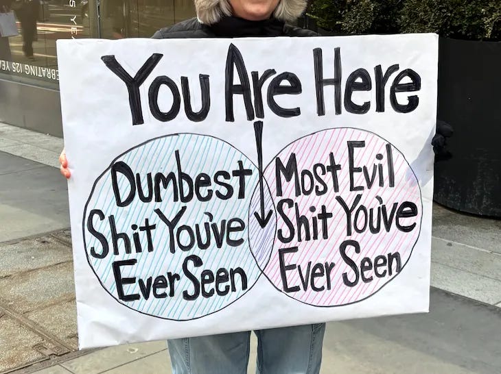 Every day (Monday-Friday), we’ll update this space with protests, signs, and other public demonstrations against the actions of the administration. Keep checking to see how Americans all across the country are protecting and defending democracy. Get help organizing from Indivisible, find protests in your area at mobilize.us, and send us your protest photos at submit@contrariannews.org.