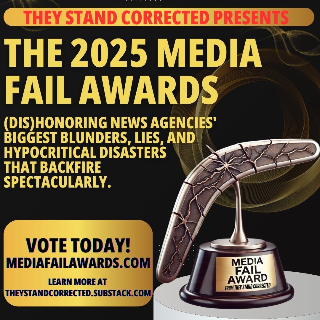 Thanks, The Contrarian! Great to work with you on this. Folks: Vote and submit ideas at mediafailawards.com, which is a shortcut for https://theystandcorrected.substack.com/p/the-2025-media-fail-awards The voting is now open!