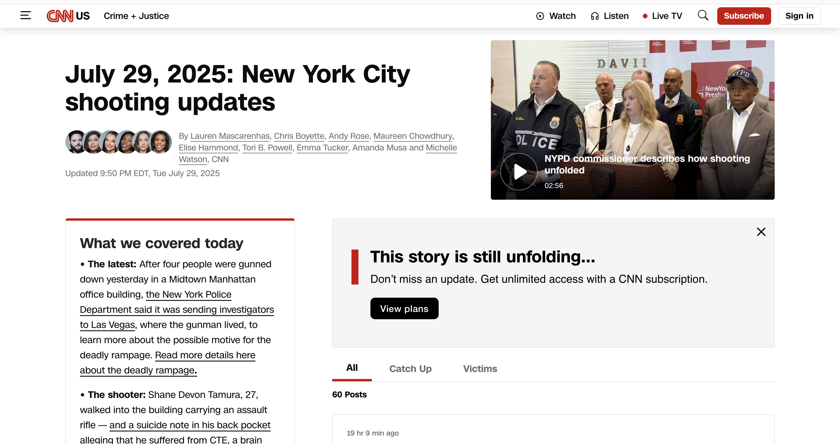 A horrible shooting in New York City did not just lead the big cable news networks in prime time; it overtook much or all of them. A lone gunman who killed four people and then himself was, to these networks, the country’s top story.