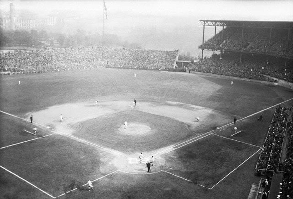 The teams played that game on a wet Forbes Field a day after the originally scheduled finale had been rained out. The grounds crew in Pittsburgh pulled out all the old-school stops to get the diamond ready, including spreading sawdust and burning gasoline to try to dry out the field. Still, the conditions were awful for baseball, decades before the high-tech drainage systems that teams now employ.
