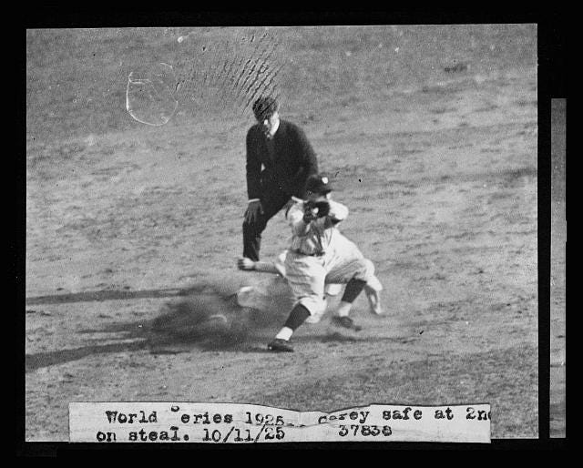 The ‘25 series pitted a couple of upstarts who had taken down an early 1920s New York City duopoly. From 1921-1923, each Fall Classic featured the New York Giants against the New York Yankees. In ’24 the Senators upended the Yankees to win the American League pennant, then upset the Giants in the World Series.
