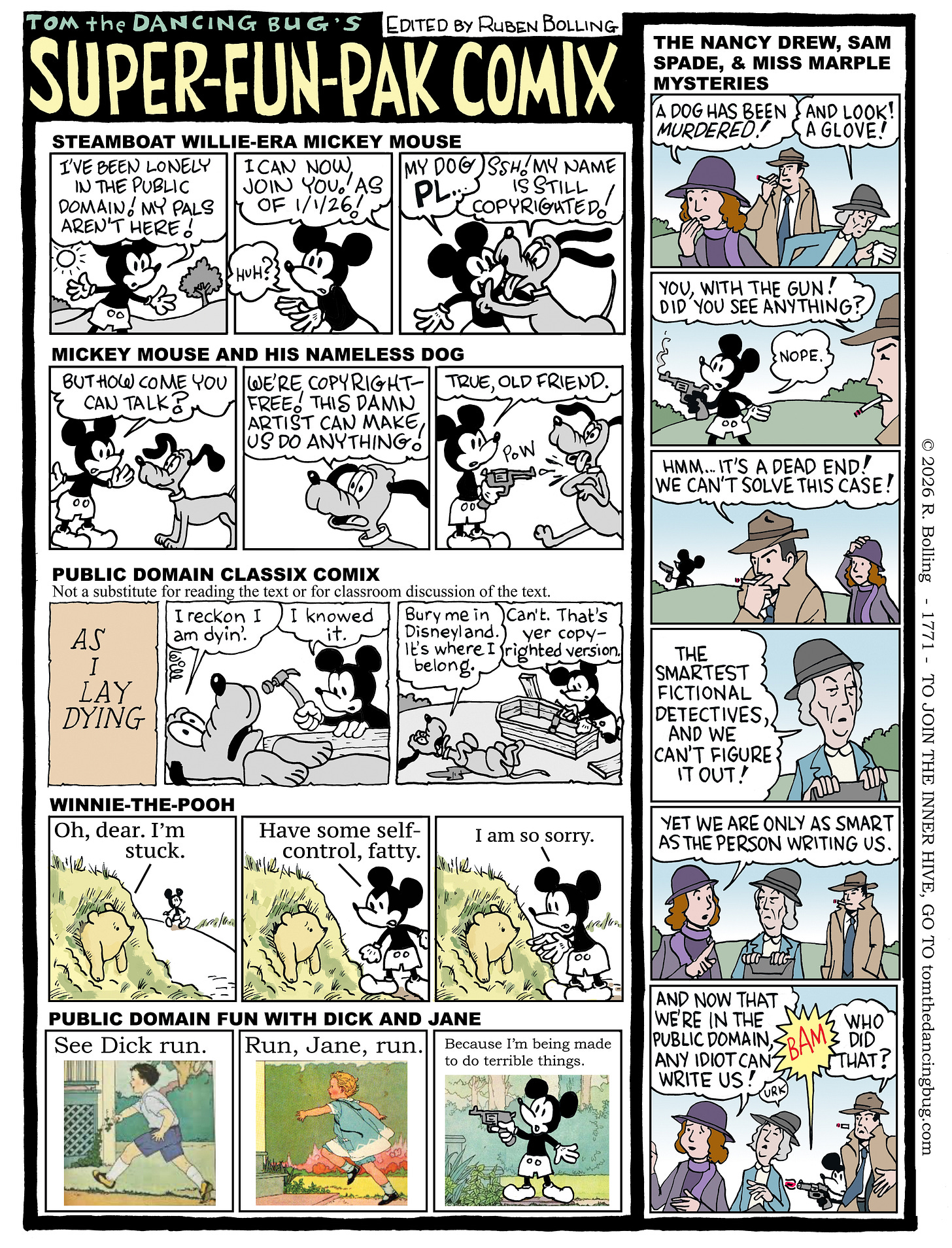 Follow Ruben Bolling on Substack ; join Tom the Dancing Bug’s Inner Hive subscription club; and please visit the Tom the Dancing Bug website, with information about The Complete Tom the Dancing Bug collection of books.