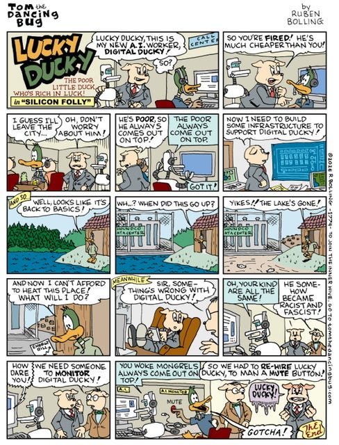 Follow Ruben Bolling on Substack ; join Tom the Dancing Bug’s Inner Hive subscription club; and please visit the Tom the Dancing Bug website, with information about The Complete Tom the Dancing Bug collection of books.